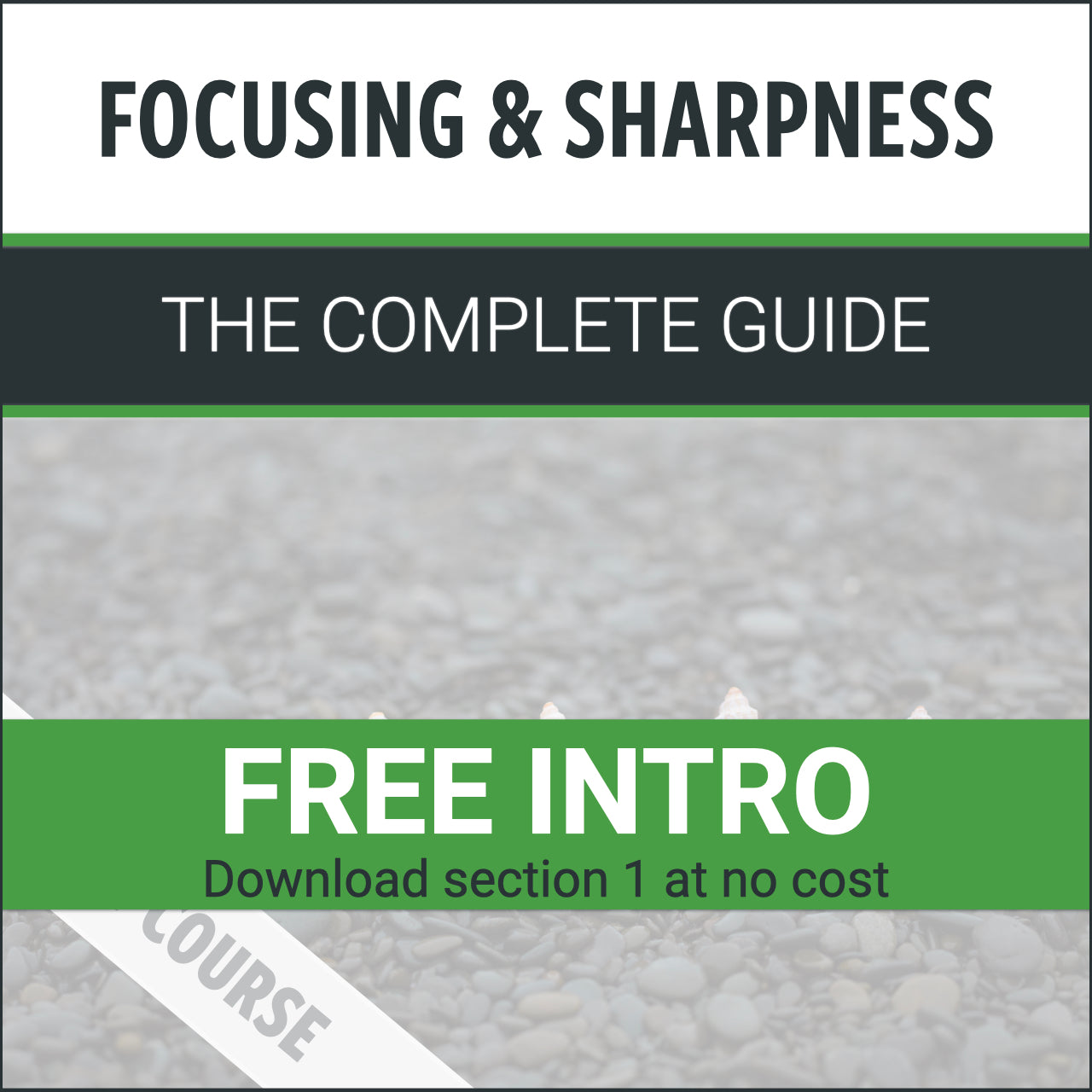 This course thoroughly covers two different, but highly-related, topics of focusing and sharpness. The basics of aperture control, focus modes, and focus areas are covered in unusual depth. Many different aspects of the photographic process affect the focus and sharpness of an image such as: aperture, focus mode, focus area, lenses, image stabilization, shutter speed, depth-of-field, and more; all of which are throughly covered in this course.